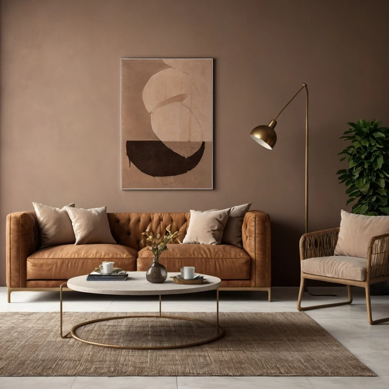 Zobacz, jak wykorzystać kolor roku Mocha Mousse w Twoim domu / grafika by leonardo.ai